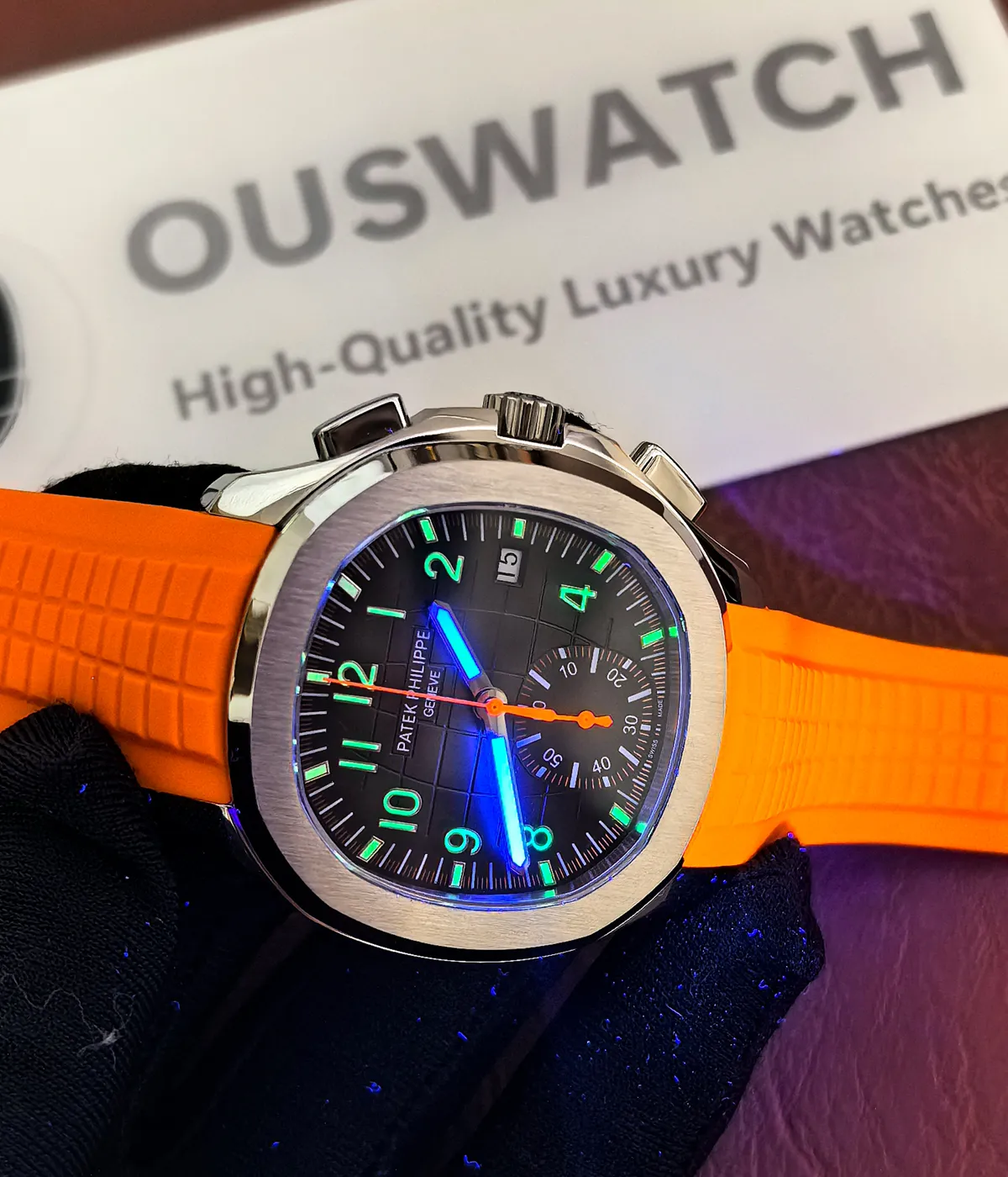A: The replica is nearly identical to the original in appearance, especially in the orange strap and black dial design. The Swiss clone movement ensures comparable precision and stability, making it highly competitive with the genuine model.