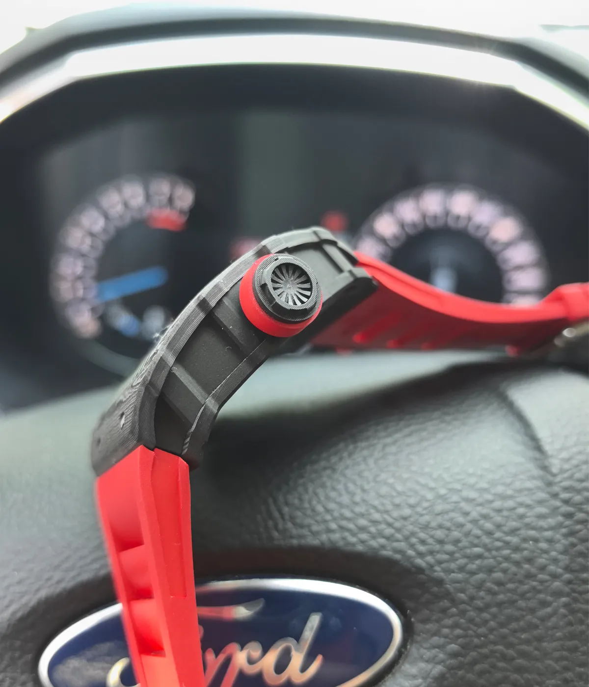 The case of the RM 35 02 is made from advanced composite materials, combining Quartz TPT and titanium alloy to create a highly durable structure. This material provides excellent corrosion resistance and high temperature tolerance, allowing the watch to maintain its performance and appearance even under extreme conditions.